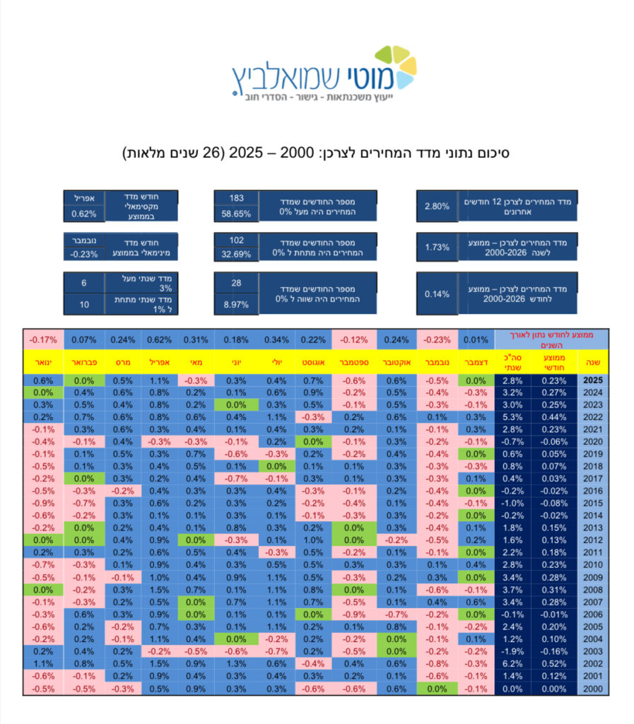 סיכום נתוני מדד המחירים לצרכן 2000-2025